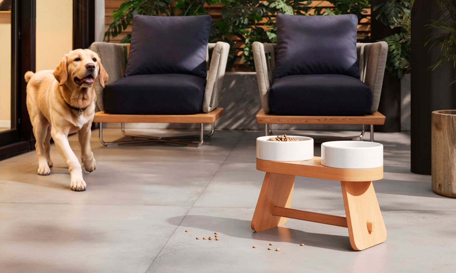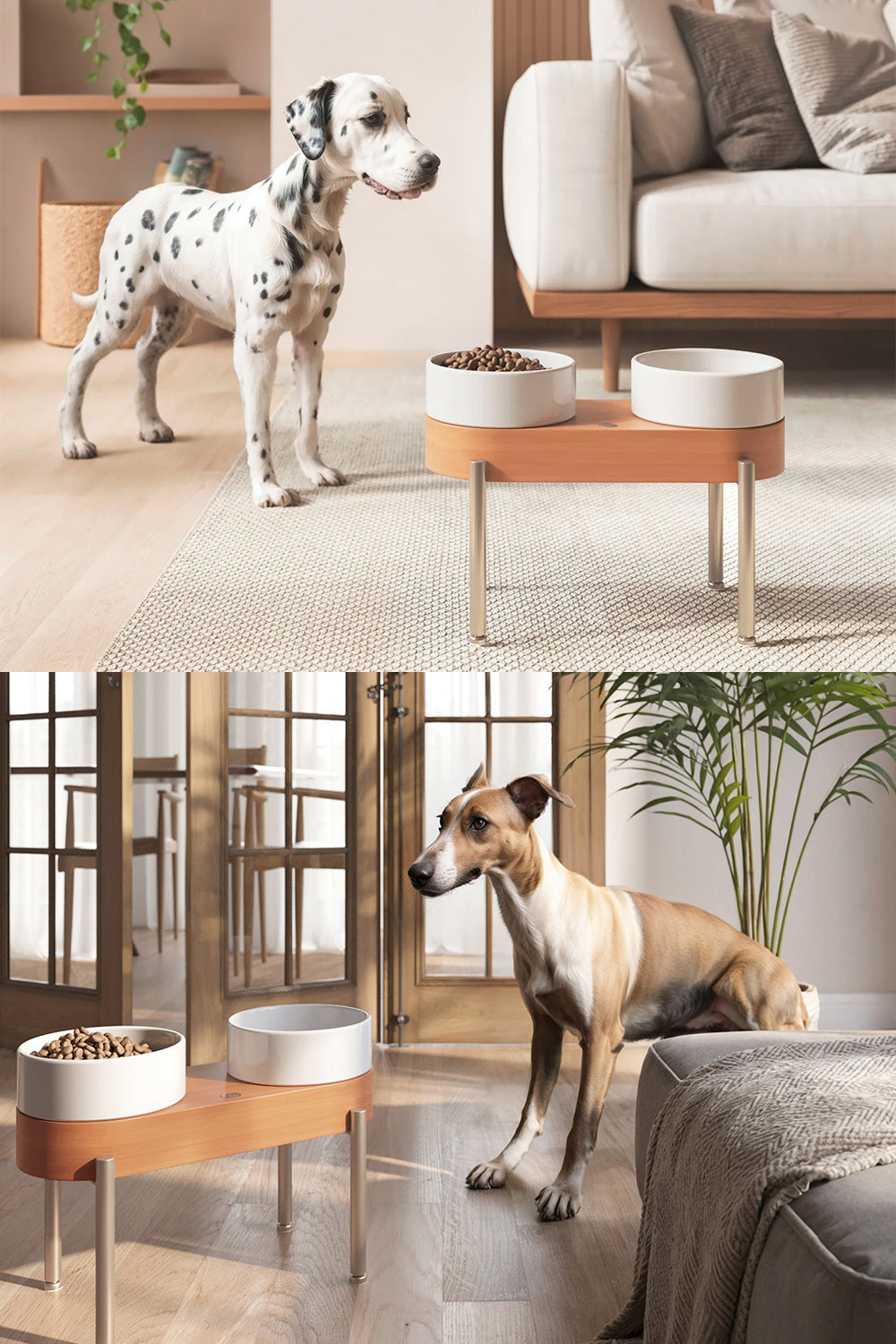 O Vector combina madeira maciça, aço carbono e cerâmica artesanal para oferecer um alimentador elevado estável, higiênico e confortável. Ideal para melhorar a postura, ajudar na digestão e compor um ambiente elegante para você e seu pet.